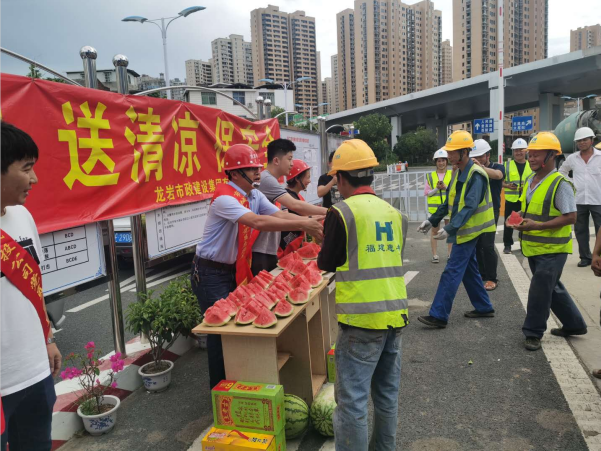 “弟兄們,來吃西瓜、喝涼茶”7月3日大中午,龍巖市政集團(tuán)組織的黨員、志愿者們?yōu)槲玳g在項(xiàng)目現(xiàn)場暫時(shí)休息的一線工人們獻(xiàn)上一塊塊甘甜可口西瓜。這是該公司針對近來天氣悶熱特意為一線職工開展的“走項(xiàng)目、送清涼、保安全”活動(dòng)。班子成員兵分幾路分別帶隊(duì)前往龍巖大橋、浮東路、羅橋節(jié)點(diǎn)和龍巖大道二期等重點(diǎn)項(xiàng)目,為現(xiàn)場一線的工人們發(fā)放了西瓜、王老吉和菊花茶等防暑降溫食品,對廣大在一線的員工克服天氣影響,堅(jiān)守崗位認(rèn)真工作表示感謝!