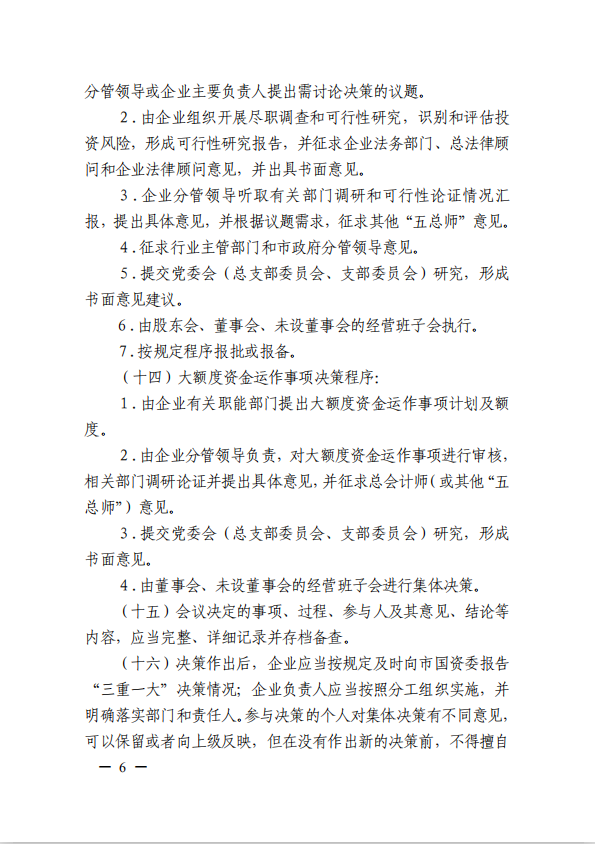 關于進一步規(guī)范市屬國有企業(yè)貫徹落實“三重一大”決策制度實施意見(國資黨委[2020]21號)