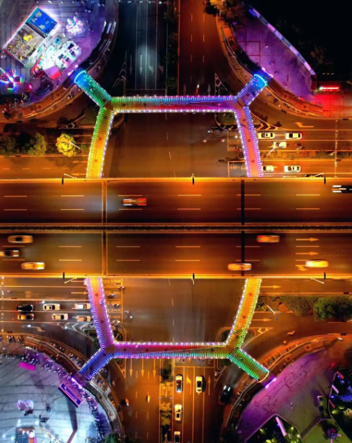 龍巖大道萬寶廣場人行天橋夜景文化工程完工